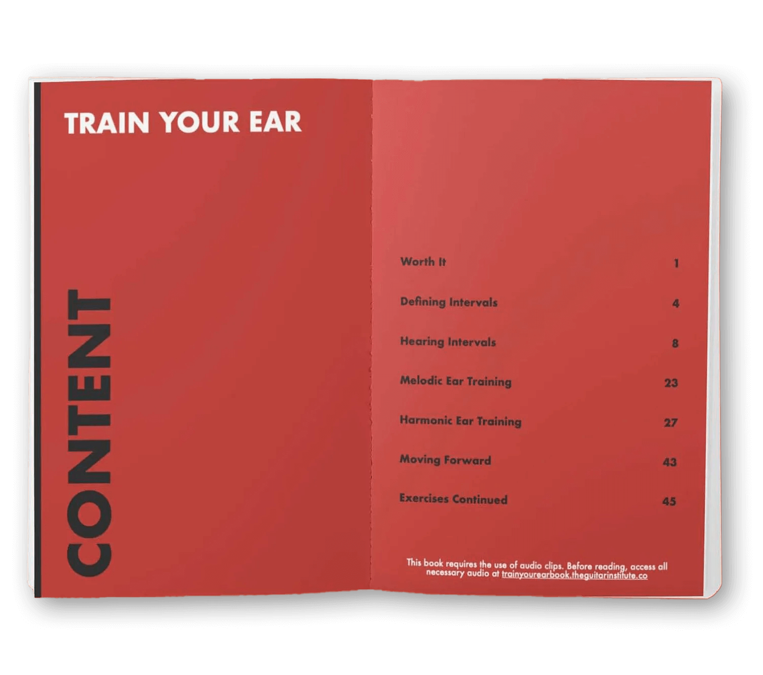 - Train Your Ear ($19 value) - An interactive book+audio method to train guitarists to play the melodies, chords and progressions that they hear without the aid of charts.